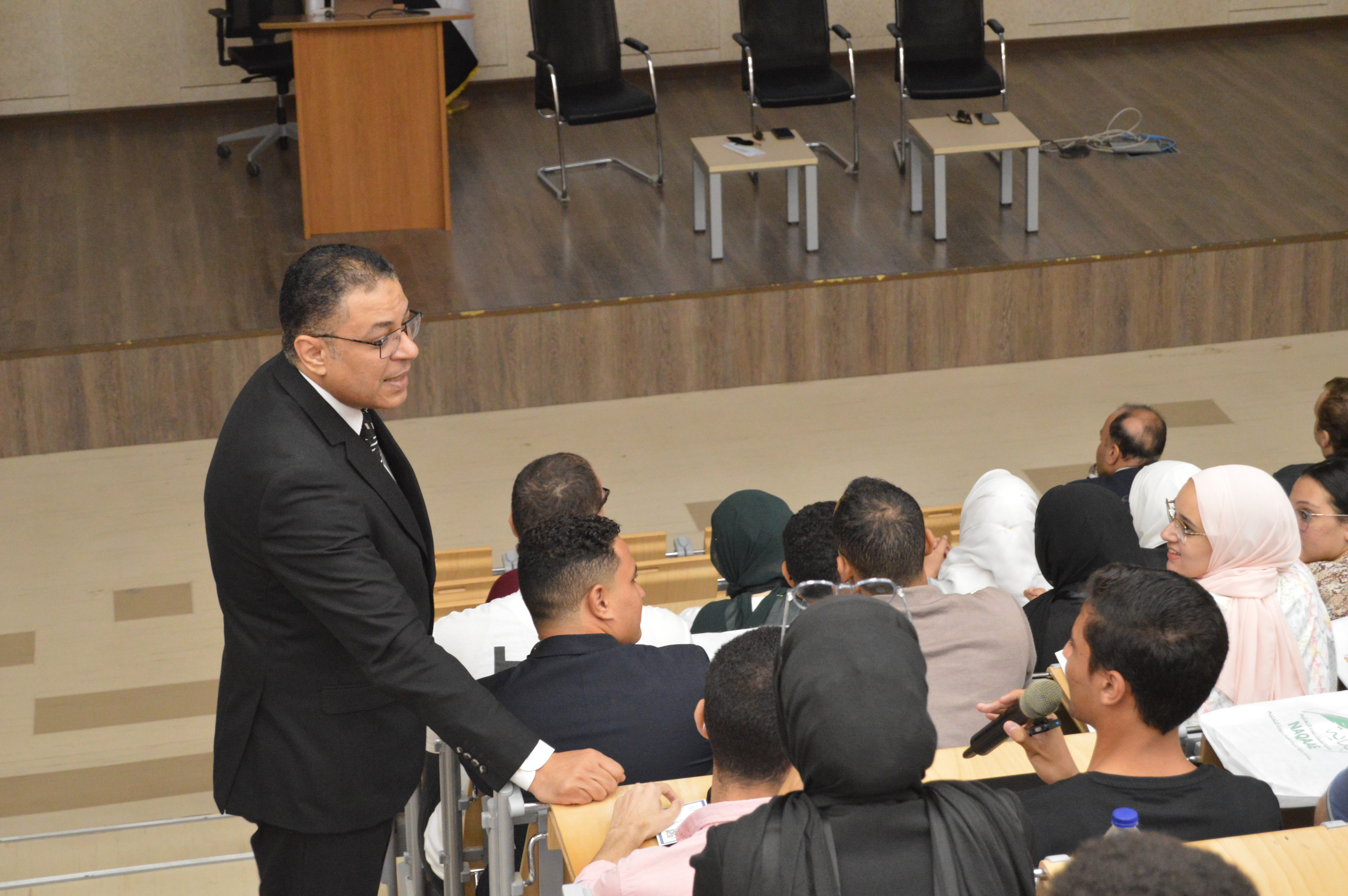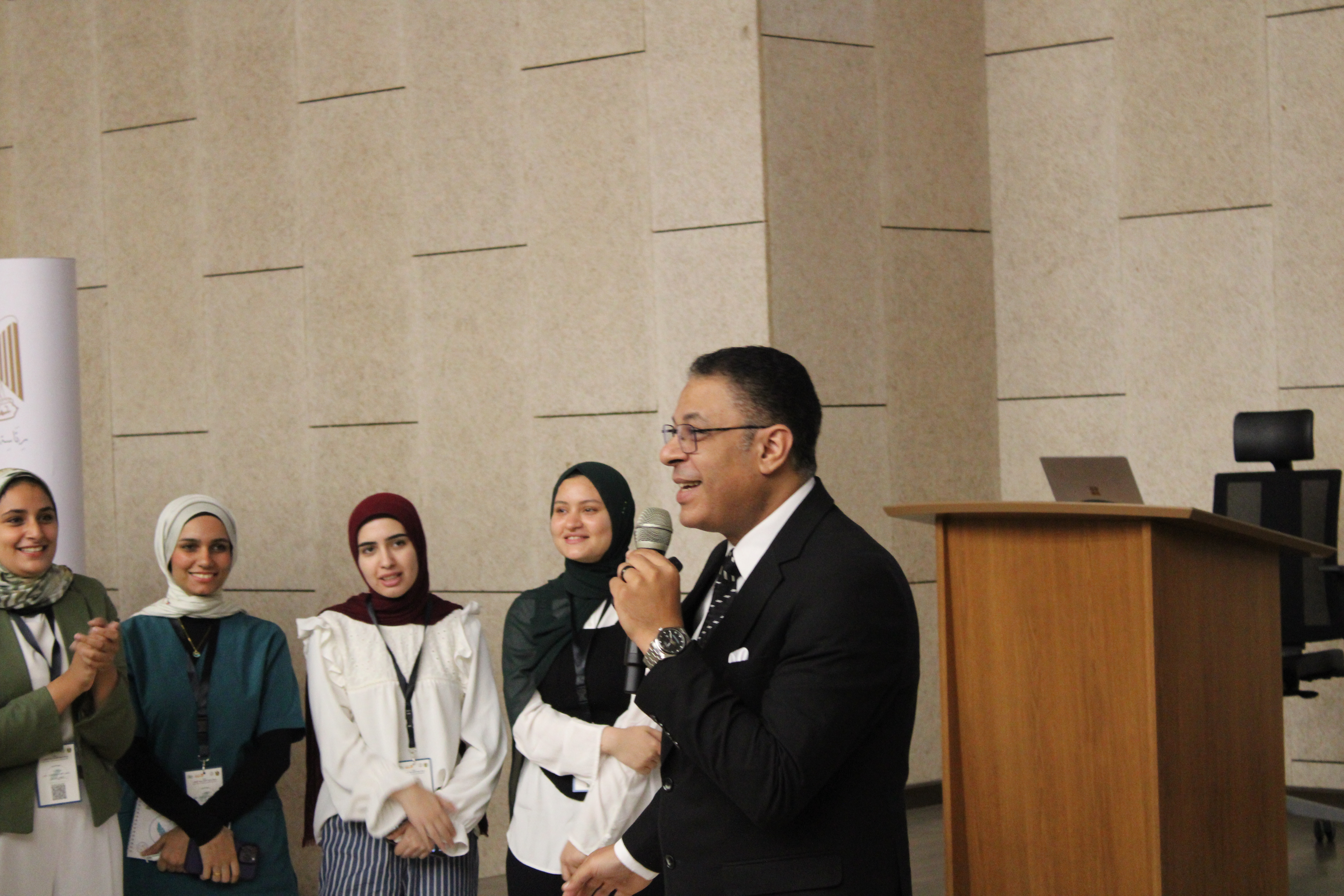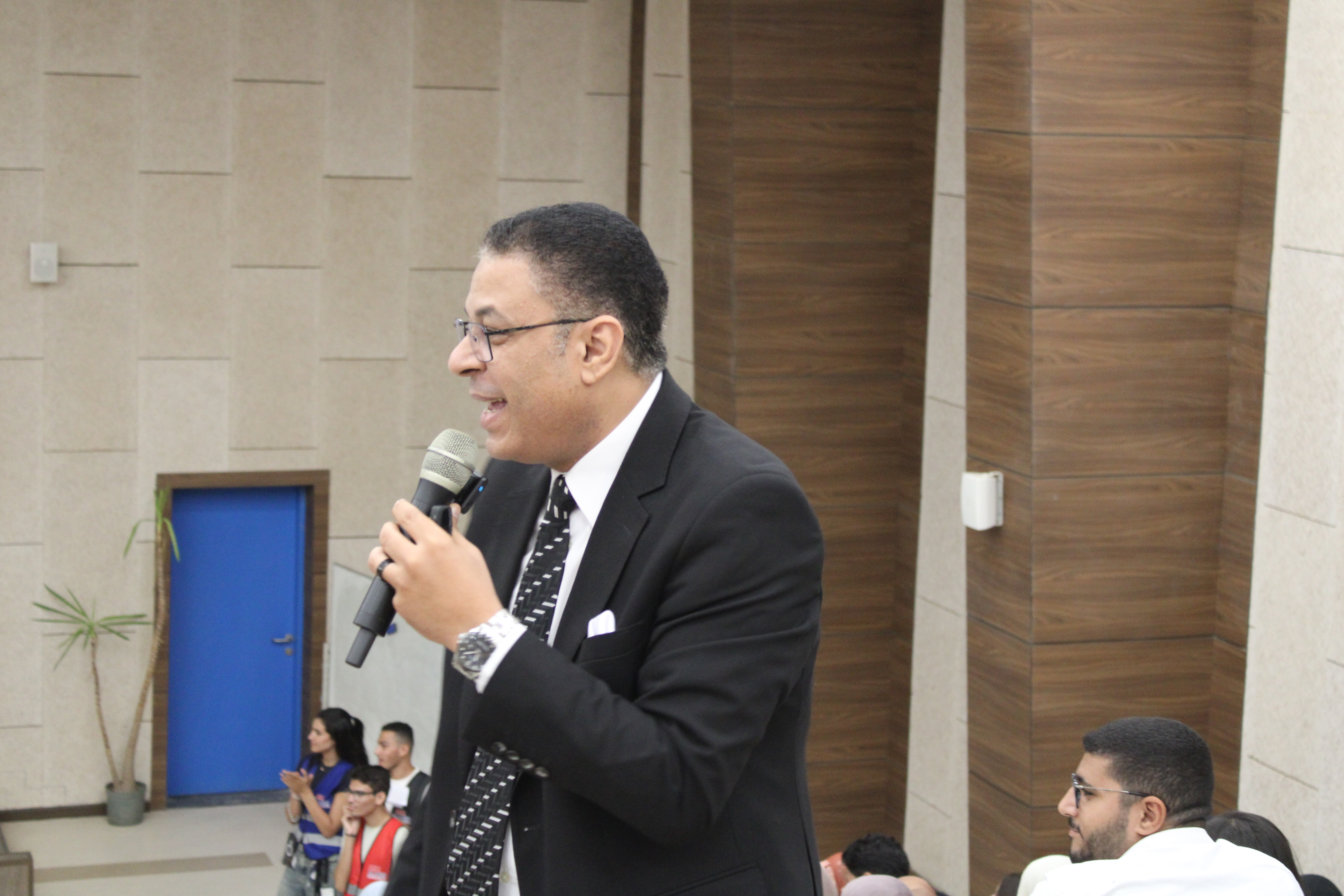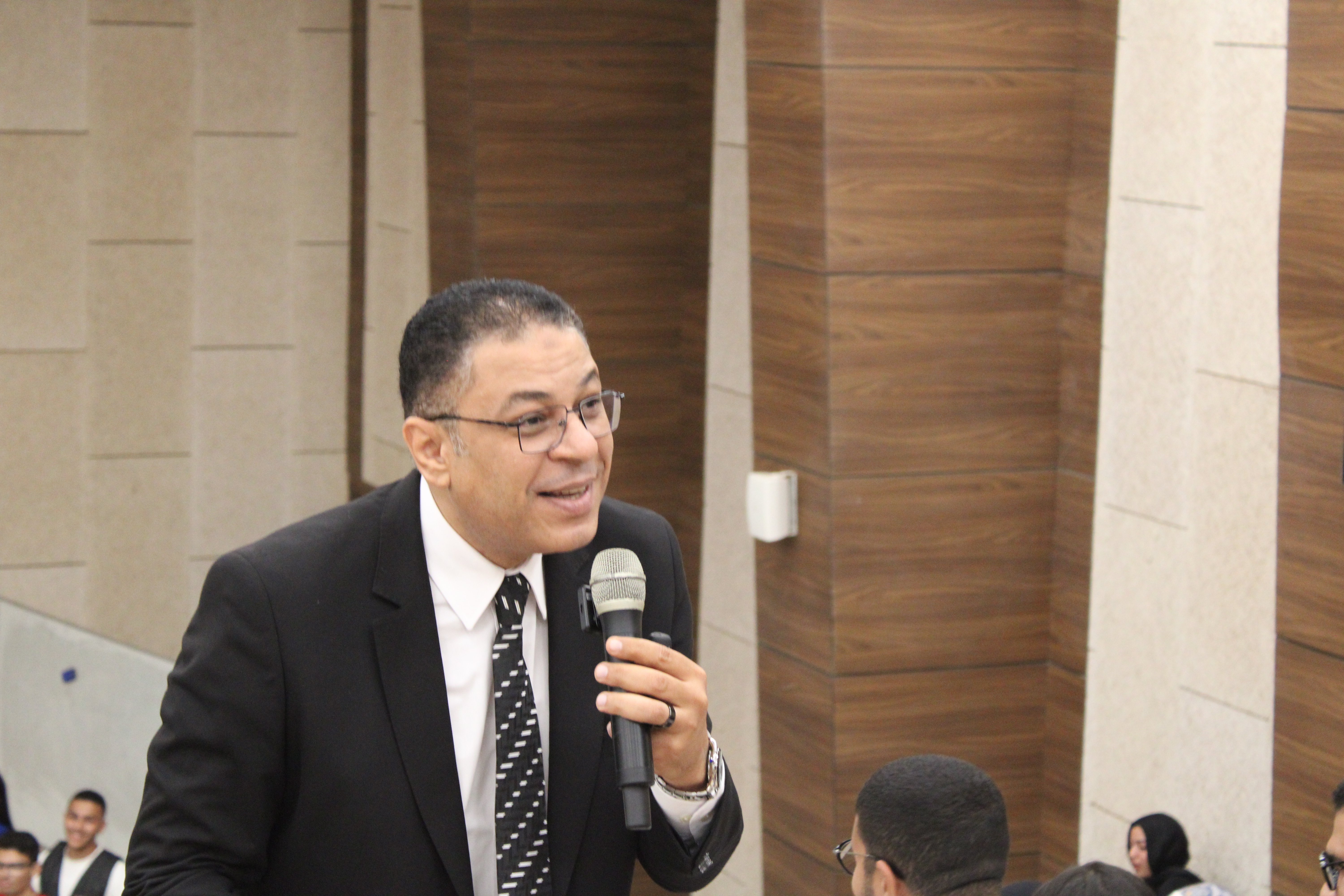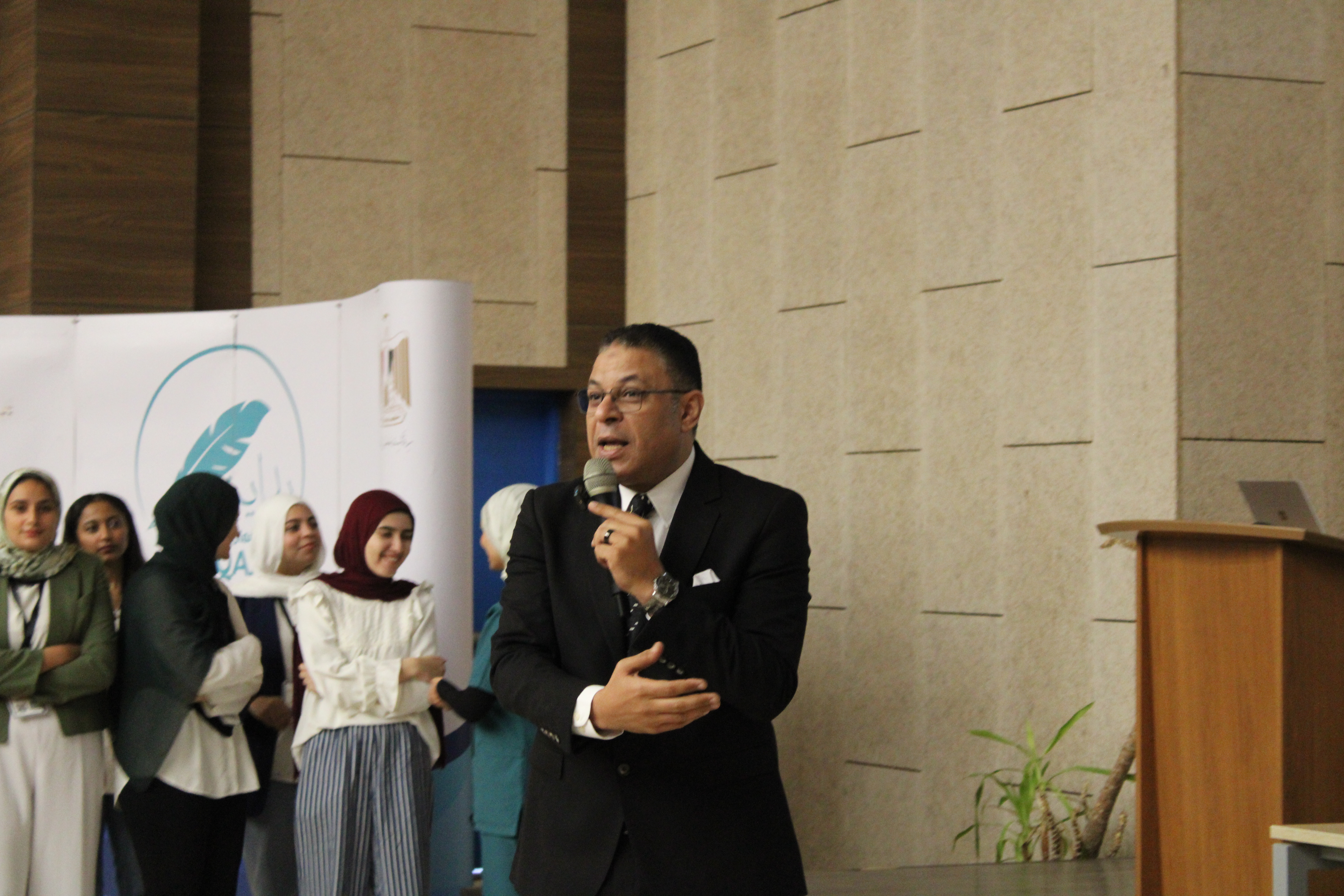 وكلمة للدكتور هشام عبد الناصر أشار فيها إلى أهمية دور الطلاب فى تعزيز التعليم جودة التعليم بالجامعة و أنهم المحرك الفاعل فى رسم سياسات المستقبل و قيادة الغد من اجل وطن يستحق الأفضل