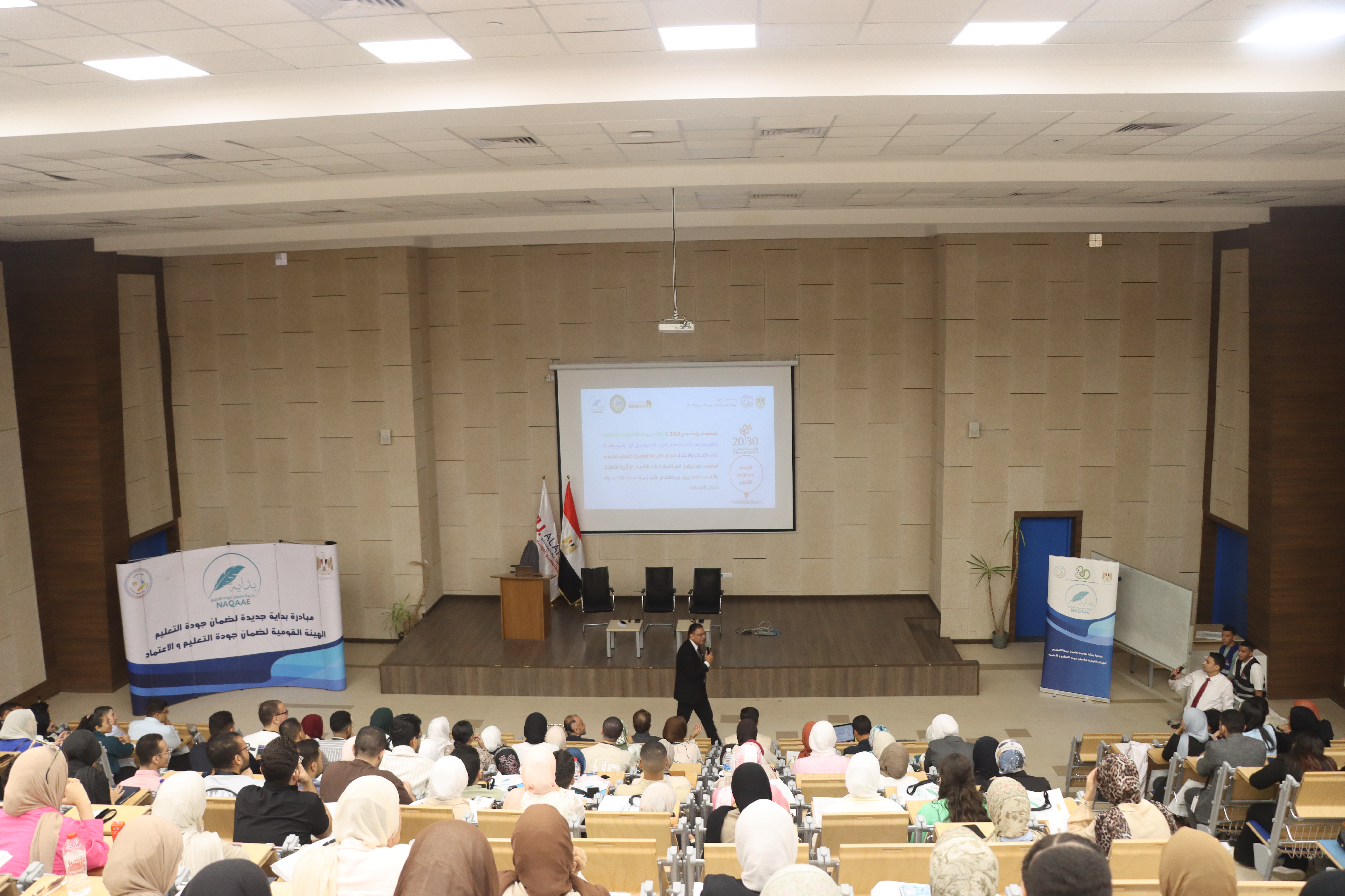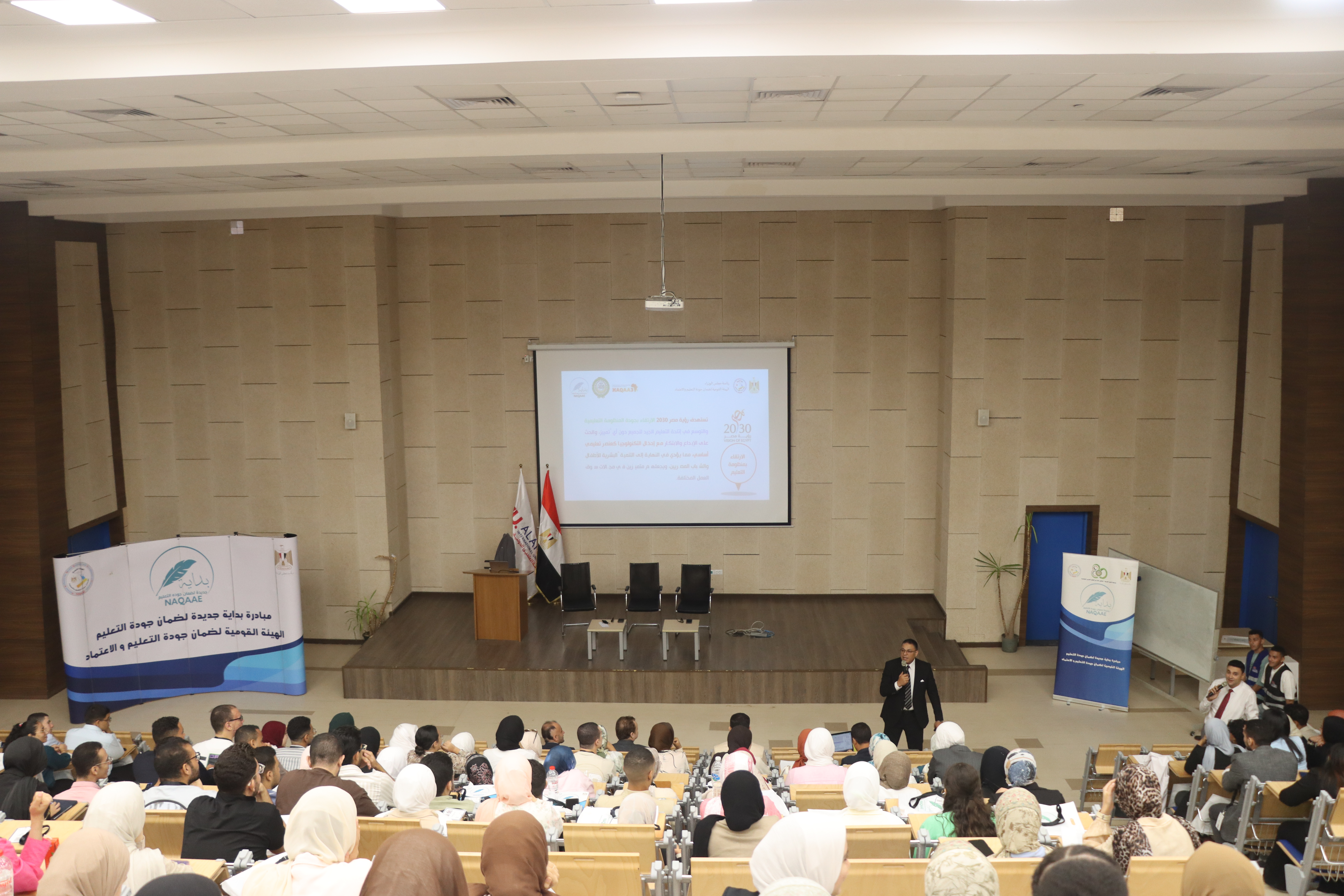 انطلقت فعاليات اليوم بعزف السلام الوطني لجمهورية مصر العربية، تلاه كلمة افتتاحية للدكتور محمد عبد المنعم استعرض فيها أهداف المبادرة ورسالتها في دعم ثقافة الجودة والتميز داخل مؤسسات التعليم العالي.